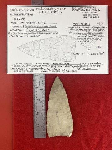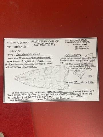 Please see picture for measurment. It is from Coryell County, Texas. Comes with William German Certificate of Authenticity. Ex-Don Screws ; Wallace Culpepper ; Jim Ferrell ; Ken Partain ; KEY WORDS: NATIVE AMERICAN INDIAN ARTIFACT ARTIFACTS ARROWHEAD ARROWHEADS MISSISSIPPIAN QUAPAW CADDO POTTERY COINS