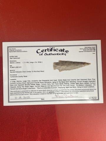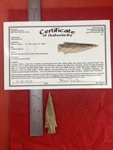 Please see picture for measurment. It is from Comanche County, Texas. Comes with Ken Partain Certificate of Authenticity. Ex- Wallace Culpepper ; Jim Ferrell ; David Bogle ; Ken Partain ; KEY WORDS: NATIVE AMERICAN INDIAN ARTIFACT ARTIFACTS ARROWHEAD ARROWHEADS MISSISSIPPIAN QUAPAW CADDO POTTERY COINS