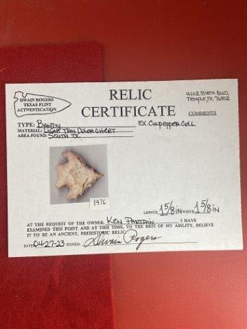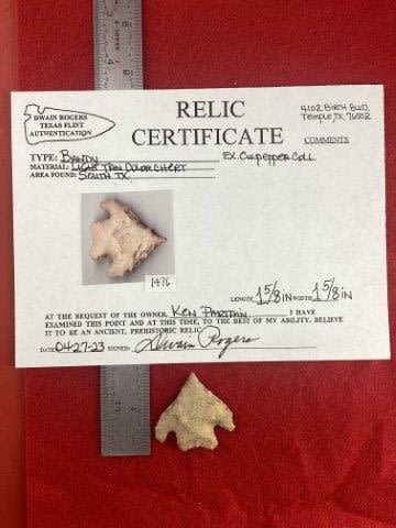 Please see picture for measurment. It is from South Texas. Comes with Dwain Roger’s Certificate of Authenticity. Ex- Wallace Culpepper ; Ken Partain ; KEY WORDS: NATIVE AMERICAN INDIAN ARTIFACT ARTIFACTS ARROWHEAD ARROWHEADS MISSISSIPPIAN QUAPAW CADDO POTTERY COINS