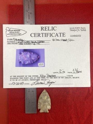 Please see picture for measurment. It is from Van Zahdt County, Texas. Comes with Dwain Roger’s Certificate of Authenticity. Ex-Don Screws ; Ken Partain ; KEY WORDS: NATIVE AMERICAN INDIAN ARTIFACT ARTIFACTS ARROWHEAD ARROWHEADS MISSISSIPPIAN QUAPAW CADDO POTTERY COINS