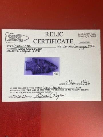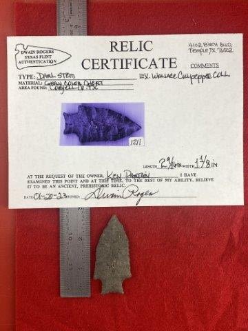 Please see picture for measurment. It is from Coryell County, Texas. Comes with Dwain Roger’s Certificate of Authenticity. Ex- Wallace Culpepper ; Ken Partain ; KEY WORDS: NATIVE AMERICAN INDIAN ARTIFACT ARTIFACTS ARROWHEAD ARROWHEADS MISSISSIPPIAN QUAPAW CADDO POTTERY COINS