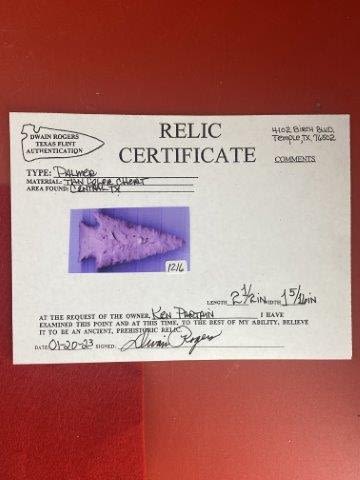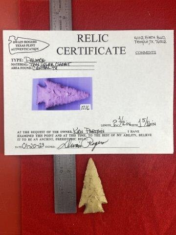 Please see picture for measurment. It is from Central Texas. Comes with Dwain Roger’s Certificate of Authenticity. Ex- Ken Partain ; KEY WORDS: NATIVE AMERICAN INDIAN ARTIFACT ARTIFACTS ARROWHEAD ARROWHEADS MISSISSIPPIAN QUAPAW CADDO POTTERY COINS