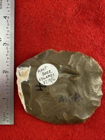 Please see picture for measurement. Made of Rootbeer Edwards Flint. All artifacts came from the great state of Texas. Ex-Warren & Darla Suleske Collection, they are pictured in Who Who’s #12. They have collected wonderful arrowheads & artifacts for over 40 years! KEY WORDS: NATIVE AMERICAN INDIAN ARTIFACT ARTIFACTS ARROWHEAD ARROWHEADS MISSISSIPPIAN QUAPAW CADDO POTTERY COINS
