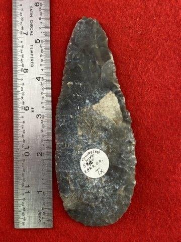 Please see picture for measurement. It is from Kerr County Texas. All artifacts came from the great state of Texas. Ex-Warren & Darla Suleske Collection, they are pictured in Who Who’s #12. They have collected wonderful arrowheads & artifacts for over 40 years! KEY WORDS: NATIVE AMERICAN INDIAN ARTIFACT ARTIFACTS ARROWHEAD ARROWHEADS MISSISSIPPIAN QUAPAW CADDO POTTERY COINS