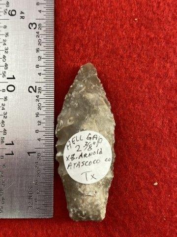 Please see picture for measurement. It is from Atascosa County Texas. All artifacts came from the great state of Texas. Ex-Bill Arnold, Warren & Darla Suleske Collection, they are pictured in Who Who’s #12. They have collected wonderful arrowheads & artifacts for over 40 years! KEY WORDS: NATIVE AMERICAN INDIAN ARTIFACT ARTIFACTS ARROWHEAD ARROWHEADS MISSISSIPPIAN QUAPAW CADDO POTTERY COINS