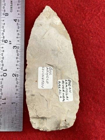 Please see picture for measurement. All artifacts came from the great state of Texas. Ex-Bill Arnold, Warren & Darla Suleske Collection, they are pictured in Who Who’s #12. They have collected wonderful arrowheads & artifacts for over 40 years! KEY WORDS: NATIVE AMERICAN INDIAN ARTIFACT ARTIFACTS ARROWHEAD ARROWHEADS MISSISSIPPIAN QUAPAW CADDO POTTERY COINS