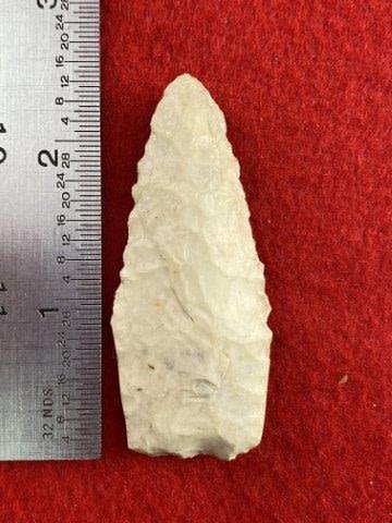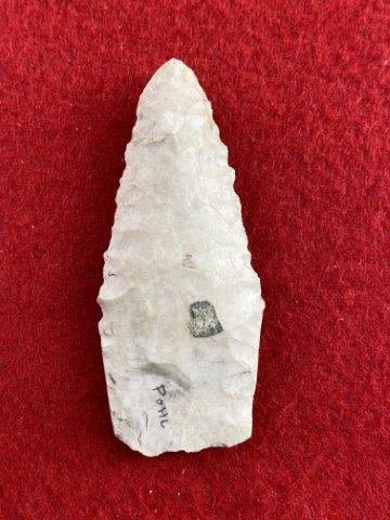 Please see picture for measurement.Found by Albert Schubge between 1885 & 1928. All artifacts came from the great state of Texas. Ex-Albert Schubge, Warren & Darla Suleske Collection, they are pictured in Who Who’s #12. They have collected wonderful arrowheads & artifacts for over 40 years! KEY WORDS: NATIVE AMERICAN INDIAN ARTIFACT ARTIFACTS ARROWHEAD ARROWHEADS MISSISSIPPIAN QUAPAW CADDO POTTERY COINS