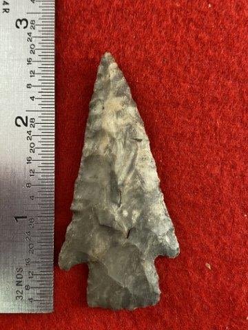 Please see picture for measurement.Found by Albert Schubge between 1885 & 1928. All artifacts came from the great state of Texas. Ex-Albert Schubge, Warren & Darla Suleske Collection, they are pictured in Who Who’s #12. They have collected wonderful arrowheads & artifacts for over 40 years! KEY WORDS: NATIVE AMERICAN INDIAN ARTIFACT ARTIFACTS ARROWHEAD ARROWHEADS MISSISSIPPIAN QUAPAW CADDO POTTERY COINS