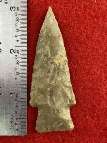 Please see picture for measurement.Found by Albert Schubge between 1885 & 1928. All artifacts came from the great state of Texas. Ex-Albert Schubge, Warren & Darla Suleske Collection, they are pictured in Who Who’s #12. They have collected wonderful arrowheads & artifacts for over 40 years! KEY WORDS: NATIVE AMERICAN INDIAN ARTIFACT ARTIFACTS ARROWHEAD ARROWHEADS MISSISSIPPIAN QUAPAW CADDO POTTERY COINS