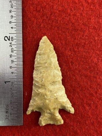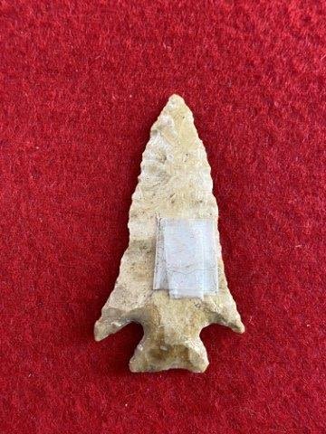 Please see picture for measurement.Found by Albert Schubge between 1885 & 1928. All artifacts came from the great state of Texas. Ex-Albert Schubge, Warren & Darla Suleske Collection, they are pictured in Who Who’s #12. They have collected wonderful arrowheads & artifacts for over 40 years! KEY WORDS: NATIVE AMERICAN INDIAN ARTIFACT ARTIFACTS ARROWHEAD ARROWHEADS MISSISSIPPIAN QUAPAW CADDO POTTERY COINS