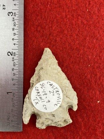 Please see picture for measurement. It is from Coryell County Texas. All artifacts came from the great state of Texas. Ex-Warren & Darla Suleske Collection, they are pictured in Who Who’s #12. They have collected wonderful arrowheads & artifacts for over 40 years! KEY WORDS: NATIVE AMERICAN INDIAN ARTIFACT ARTIFACTS ARROWHEAD ARROWHEADS MISSISSIPPIAN QUAPAW CADDO POTTERY COINS