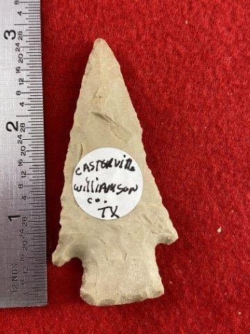 Please see picture for measurement.It is from Williamson County Texas. All artifacts came from the great state of Texas. Ex-Warren & Darla Suleske Collection, they are pictured in Who Who’s #12. They have collected wonderful arrowheads & artifacts for over 40 years! KEY WORDS: NATIVE AMERICAN INDIAN ARTIFACT ARTIFACTS ARROWHEAD ARROWHEADS MISSISSIPPIAN QUAPAW CADDO POTTERY COINS