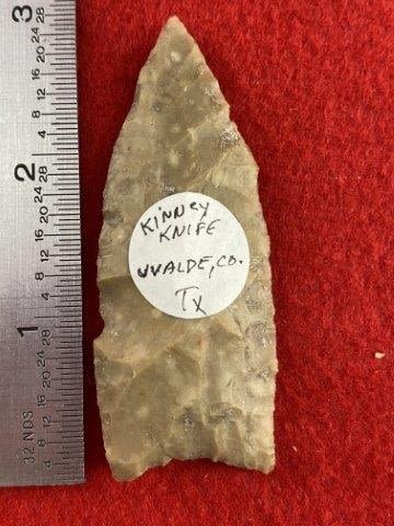 Please see picture for measurement. It is from Uvalde County Texas. All artifacts came from the great state of Texas. Ex-Warren & Darla Suleske Collection, they are pictured in Who Who’s #12. They have collected wonderful arrowheads & artifacts for over 40 years! KEY WORDS: NATIVE AMERICAN INDIAN ARTIFACT ARTIFACTS ARROWHEAD ARROWHEADS MISSISSIPPIAN QUAPAW CADDO POTTERY COINS