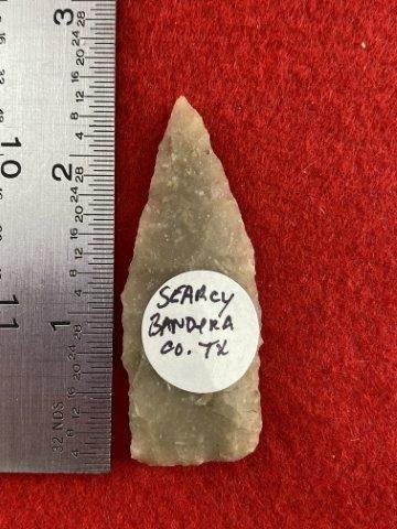 Please see picture for measurement. It is from Bandera County Texas. All artifacts came from the great state of Texas. Ex-Warren & Darla Suleske Collection, they are pictured in Who Who’s #12. They have collected wonderful arrowheads & artifacts for over 40 years! KEY WORDS: NATIVE AMERICAN INDIAN ARTIFACT ARTIFACTS ARROWHEAD ARROWHEADS MISSISSIPPIAN QUAPAW CADDO POTTERY COINS