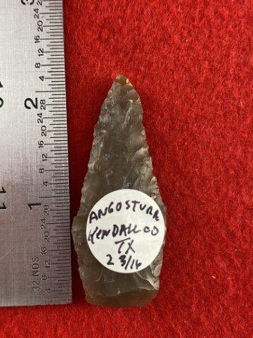 Please see picture for measurement. It is from Kendall County Texas. All artifacts came from the great state of Texas. Ex-Warren & Darla Suleske Collection, they are pictured in Who Who’s #12. They have collected wonderful arrowheads & artifacts for over 40 years! KEY WORDS: NATIVE AMERICAN INDIAN ARTIFACT ARTIFACTS ARROWHEAD ARROWHEADS MISSISSIPPIAN QUAPAW CADDO POTTERY COINS
