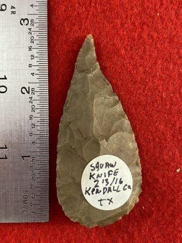 Please see picture for measurement. It is from Kendall County Texas. All artifacts came from the great state of Texas. Ex-Warren & Darla Suleske Collection, they are pictured in Who Who’s #12. They have collected wonderful arrowheads & artifacts for over 40 years! KEY WORDS: NATIVE AMERICAN INDIAN ARTIFACT ARTIFACTS ARROWHEAD ARROWHEADS MISSISSIPPIAN QUAPAW CADDO POTTERY COINS