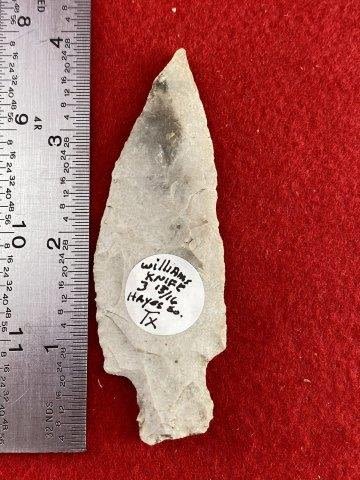 Please see picture for measurement. It is from Hayes County Texas. All artifacts came from the great state of Texas. Ex-Warren & Darla Suleske Collection, they are pictured in Who Who’s #12. They have collected wonderful arrowheads & artifacts for over 40 years! KEY WORDS: NATIVE AMERICAN INDIAN ARTIFACT ARTIFACTS ARROWHEAD ARROWHEADS MISSISSIPPIAN QUAPAW CADDO POTTERY COINS