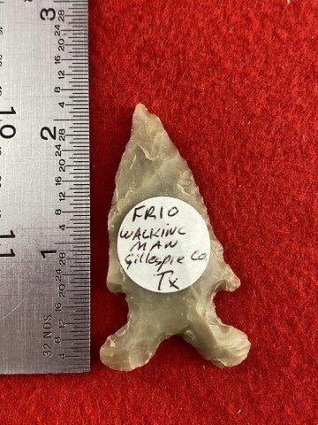 Please see picture for measurement. Walking Man. It is from Gillespie County Texas. All artifacts came from the great state of Texas. Ex-Warren & Darla Suleske Collection, they are pictured in Who Who’s #12. They have collected wonderful arrowheads & artifacts for over 40 years! KEY WORDS: NATIVE AMERICAN INDIAN ARTIFACT ARTIFACTS ARROWHEAD ARROWHEADS MISSISSIPPIAN QUAPAW CADDO POTTERY COINS