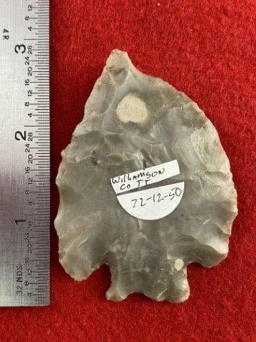 Please see picture for measurement. It is from Williamson County Texas. All artifacts came from the great state of Texas. Ex-Warren & Darla Suleske Collection, they are pictured in Who Who’s #12. They have collected wonderful arrowheads & artifacts for over 40 years! KEY WORDS: NATIVE AMERICAN INDIAN ARTIFACT ARTIFACTS ARROWHEAD ARROWHEADS MISSISSIPPIAN QUAPAW CADDO POTTERY COINS