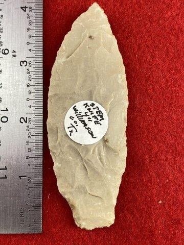 Please see picture for measurement.It is from Williamson County Texas. All artifacts came from the great state of Texas. Ex-Warren & Darla Suleske Collection, they are pictured in Who Who’s #12. They have collected wonderful arrowheads & artifacts for over 40 years! KEY WORDS: NATIVE AMERICAN INDIAN ARTIFACT ARTIFACTS ARROWHEAD ARROWHEADS MISSISSIPPIAN QUAPAW CADDO POTTERY COINS