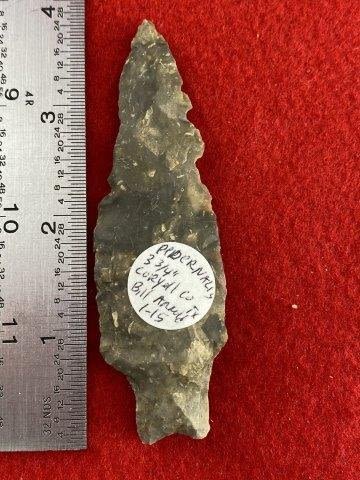 Please see picture for measurement. It is from Coryell County Texas. All artifacts came from the great state of Texas. Ex-Bill Arnold, Warren & Darla Suleske Collection, they are pictured in Who Who’s #12. They have collected wonderful arrowheads & artifacts for over 40 years! KEY WORDS: NATIVE AMERICAN INDIAN ARTIFACT ARTIFACTS ARROWHEAD ARROWHEADS MISSISSIPPIAN QUAPAW CADDO POTTERY COINS