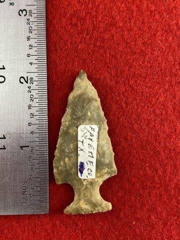 Please see picture for measurement. It is from Fayette County Texas. All artifacts came from the great state of Texas. Ex-Warren & Darla Suleske Collection, they are pictured in Who Who’s #12. They have collected wonderful arrowheads & artifacts for over 40 years! KEY WORDS: NATIVE AMERICAN INDIAN ARTIFACT ARTIFACTS ARROWHEAD ARROWHEADS MISSISSIPPIAN QUAPAW CADDO POTTERY COINS