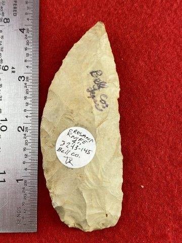 Please see picture for measurement. It is from Bell County Texas. All artifacts came from the great state of Texas. Ex-Warren & Darla Suleske Collection, they are pictured in Who Who’s #12. They have collected wonderful arrowheads & artifacts for over 40 years! KEY WORDS: NATIVE AMERICAN INDIAN ARTIFACT ARTIFACTS ARROWHEAD ARROWHEADS MISSISSIPPIAN QUAPAW CADDO POTTERY COINS