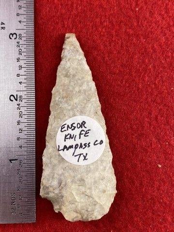 Please see picture for measurement. It is from Lampass County Texas. All artifacts came from the great state of Texas. Ex-Warren & Darla Suleske Collection, they are pictured in Who Who’s #12. They have collected wonderful arrowheads & artifacts for over 40 years! KEY WORDS: NATIVE AMERICAN INDIAN ARTIFACT ARTIFACTS ARROWHEAD ARROWHEADS MISSISSIPPIAN QUAPAW CADDO POTTERY COINS