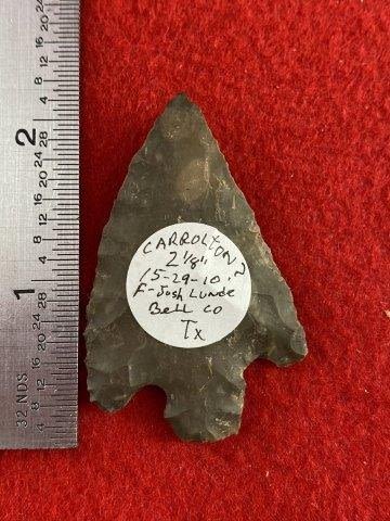 Please see picture for measurement. It is from Bell County Texas. All artifacts came from the great state of Texas. Ex-Josh Lunde, Warren & Darla Suleske Collection, they are pictured in Who Who’s #12. They have collected wonderful arrowheads & artifacts for over 40 years! KEY WORDS: NATIVE AMERICAN INDIAN ARTIFACT ARTIFACTS ARROWHEAD ARROWHEADS MISSISSIPPIAN QUAPAW CADDO POTTERY COINS