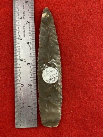 Please see picture for measurement. It is from Uvalde County Texas. All artifacts came from the great state of Texas. Ex-Jifish, Warren & Darla Suleske Collection, they are pictured in Who Who’s #12. They have collected wonderful arrowheads & artifacts for over 40 years! KEY WORDS: NATIVE AMERICAN INDIAN ARTIFACT ARTIFACTS ARROWHEAD ARROWHEADS MISSISSIPPIAN QUAPAW CADDO POTTERY COINS