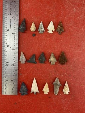 15 Arrow Points Indian Artifact Arrowhead