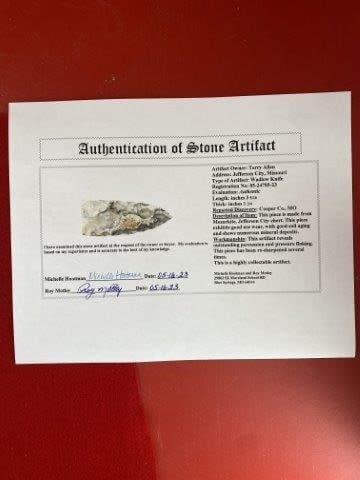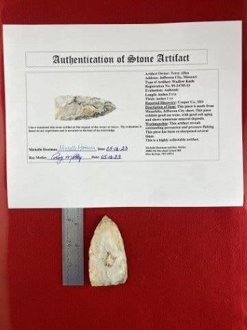 Please see picture for measurement. It is from Cooper County Missouri. It comes with a Roy Motley Certificate of Authenticity. These artifacts are from multiple collections from around the United States. KEY WORDS: NATIVE AMERICAN INDIAN ARTIFACT ARTIFACTS ARROWHEAD ARROWHEADS MISSISSIPPIAN QUAPAW CADDO POTTERY COINS MORGAN DOLLAR PEACE DOLLAR SILVER COINS