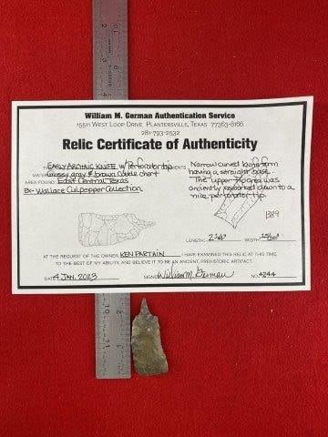 Early Archaic Knife w/ Perforator tip with COA