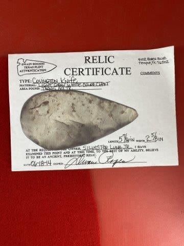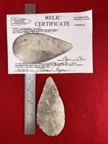 Please see picture for measurement. It is from Travis County Texas. It comes with a Dwain Rogers Certificate of Authenticity. All artifacts came from the great state of Texas. Ex-Silvester Luna Jr., Warren & Darla Suleske Collection, they are pictured in Who Who’s #12. They have collected wonderful arrowheads & artifacts for over 40 years! KEY WORDS: NATIVE AMERICAN INDIAN ARTIFACT ARTIFACTS ARROWHEAD ARROWHEADS MISSISSIPPIAN QUAPAW CADDO POTTERY COINS