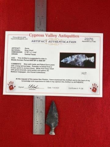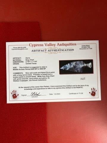 Please see picture for measurment. It is from Central Texas. Comes with Carlos Black Certificate of Authenticity. Ex- Wallace Culpepper ; Jim Ferrell ; Ken Partain ; KEY WORDS: NATIVE AMERICAN INDIAN ARTIFACT ARTIFACTS ARROWHEAD ARROWHEADS MISSISSIPPIAN QUAPAW CADDO POTTERY COINS