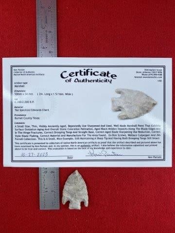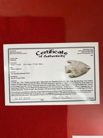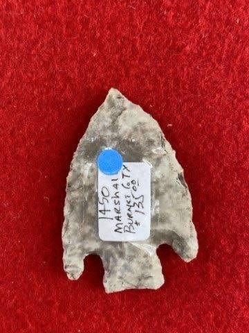 Please see picture for measurment. It is from Burnett County, Texas. Comes with Ken Partain Certificate of Authenticity. Ex-Don Screws ; Wallace Culpepper ; Jim Ferrell ; Ken Partain ; KEY WORDS: NATIVE AMERICAN INDIAN ARTIFACT ARTIFACTS ARROWHEAD ARROWHEADS MISSISSIPPIAN QUAPAW CADDO POTTERY COINS
