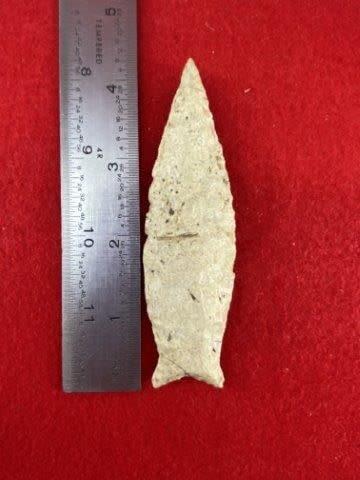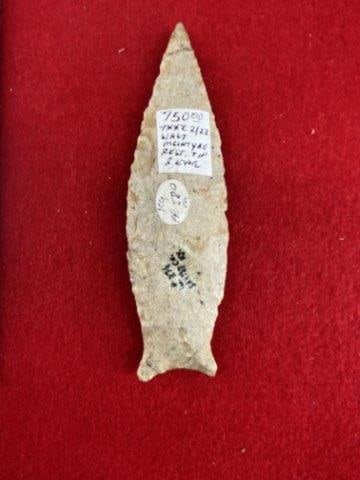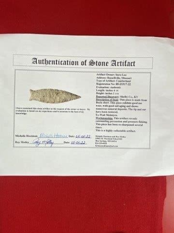 Please see picture for measurement. It is from Shelby County Kentucky. ex-Walt McIntyre Collection. Comes with a Motley Certificate of Authenticity. These artifacts are from multiple collections from around the United States. KEY WORDS: NATIVE AMERICAN INDIAN ARTIFACT ARTIFACTS ARROWHEAD ARROWHEADS MISSISSIPPIAN QUAPAW CADDO POTTERY COINS MORGAN DOLLAR PEACE DOLLAR SILVER COINS
