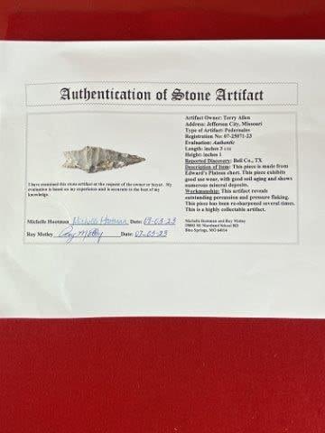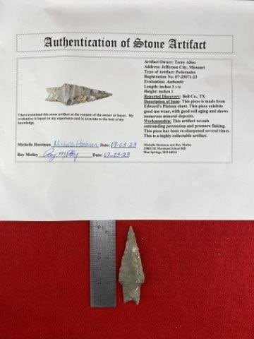 Please see picture for measurement. It is from Bell County Texas. ex-Terry Allen Collection. Comes with a Motley Certificate of Authenticity. These artifacts are from multiple collections from around the United States. KEY WORDS: NATIVE AMERICAN INDIAN ARTIFACT ARTIFACTS ARROWHEAD ARROWHEADS MISSISSIPPIAN QUAPAW CADDO POTTERY COINS MORGAN DOLLAR PEACE DOLLAR SILVER COINS
