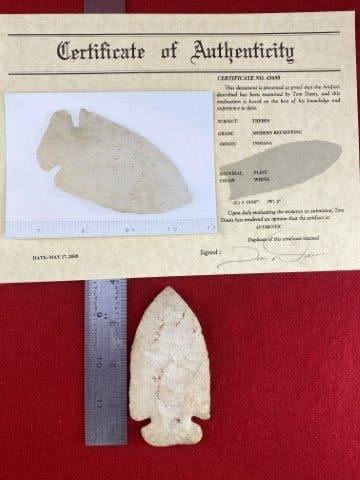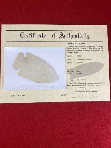 Please see picture for measurement. It is from Indiana. Has Dwain Rogers Certificate of Authenticity. These artifacts are from multiple collections from around the United States. KEY WORDS: NATIVE AMERICAN INDIAN ARTIFACT ARTIFACTS ARROWHEAD ARROWHEADS MISSISSIPPIAN QUAPAW CADDO POTTERY COINS MORGAN DOLLAR PEACE DOLLAR SILVER COINS