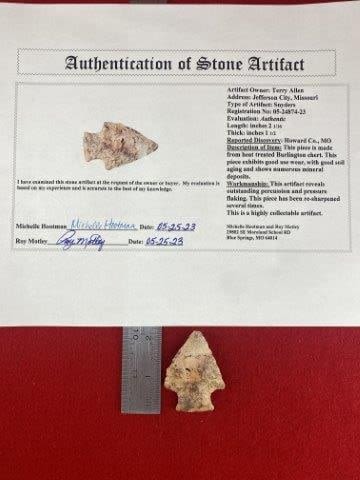 Please view the Motley Certificate of Authenticity for all information, where it is from , length, reported discovery, & the collections from which they came. Please see picture for measurement. These artifacts are from multiple collections from around the United States. KEY WORDS: NATIVE AMERICAN INDIAN ARTIFACT ARTIFACTS ARROWHEAD ARROWHEADS MISSISSIPPIAN QUAPAW CADDO POTTERY COINS MORGAN DOLLAR PEACE DOLLAR SILVER COINS