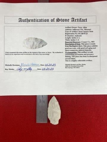 Please view the Motley Certificate of Authenticity for all information, where it is from , length, reported discovery, & the collections from which they came. Please see picture for measurement. These artifacts are from multiple collections from around the United States. KEY WORDS: NATIVE AMERICAN INDIAN ARTIFACT ARTIFACTS ARROWHEAD ARROWHEADS MISSISSIPPIAN QUAPAW CADDO POTTERY COINS MORGAN DOLLAR PEACE DOLLAR SILVER COINS