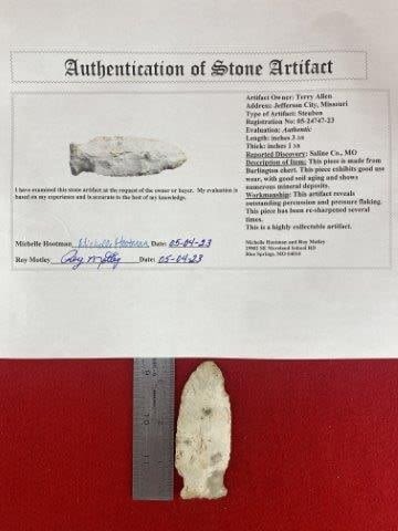 Please view the Motley Certificate of Authenticity for all information, where it is from , length, reported discovery, & the collections from which they came. Please see picture for measurement. These artifacts are from multiple collections from around the United States. KEY WORDS: NATIVE AMERICAN INDIAN ARTIFACT ARTIFACTS ARROWHEAD ARROWHEADS MISSISSIPPIAN QUAPAW CADDO POTTERY COINS MORGAN DOLLAR PEACE DOLLAR SILVER COINS
