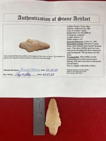 Please view the Motley Certificate of Authenticity for all information, where it is from , length, reported discovery, & the collections from which they came. Please see picture for measurement. These artifacts are from multiple collections from around the United States. KEY WORDS: NATIVE AMERICAN INDIAN ARTIFACT ARTIFACTS ARROWHEAD ARROWHEADS MISSISSIPPIAN QUAPAW CADDO POTTERY COINS MORGAN DOLLAR PEACE DOLLAR SILVER COINS