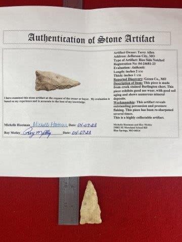 Please view the Motley Certificate of Authenticity for all information, where it is from , length, reported discovery, & the collections from which they came. Please see picture for measurement. These artifacts are from multiple collections from around the United States. KEY WORDS: NATIVE AMERICAN INDIAN ARTIFACT ARTIFACTS ARROWHEAD ARROWHEADS MISSISSIPPIAN QUAPAW CADDO POTTERY COINS MORGAN DOLLAR PEACE DOLLAR SILVER COINS