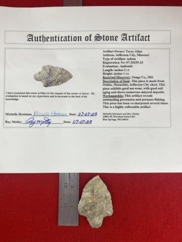 Please view the Motley Certificate of Authenticity for all information, where it is from , length, reported discovery, & the collections from which they came. Please see picture for measurement. These artifacts are from multiple collections from around the United States. KEY WORDS: NATIVE AMERICAN INDIAN ARTIFACT ARTIFACTS ARROWHEAD ARROWHEADS MISSISSIPPIAN QUAPAW CADDO POTTERY COINS MORGAN DOLLAR PEACE DOLLAR SILVER COINS