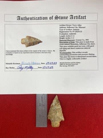 Please view the Motley Certificate of Authenticity for all information, where it is from , length, reported discovery, & the collections from which they came. Please see picture for measurement. These artifacts are from multiple collections from around the United States. KEY WORDS: NATIVE AMERICAN INDIAN ARTIFACT ARTIFACTS ARROWHEAD ARROWHEADS MISSISSIPPIAN QUAPAW CADDO POTTERY COINS MORGAN DOLLAR PEACE DOLLAR SILVER COINS