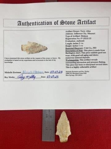 Please view the Motley Certificate of Authenticity for all information, where it is from , length, reported discovery, & the collections from which they came. Please see picture for measurement. These artifacts are from multiple collections from around the United States. KEY WORDS: NATIVE AMERICAN INDIAN ARTIFACT ARTIFACTS ARROWHEAD ARROWHEADS MISSISSIPPIAN QUAPAW CADDO POTTERY COINS MORGAN DOLLAR PEACE DOLLAR SILVER COINS