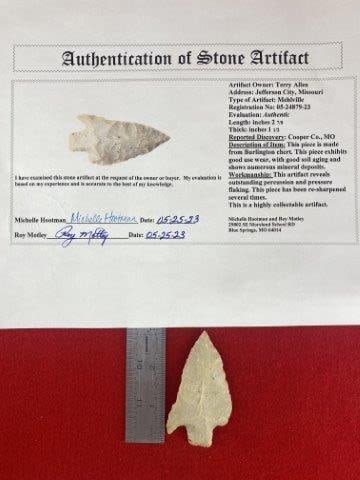 Please view the Motley Certificate of Authenticity for all information, where it is from , length, reported discovery, & the collections from which they came. Please see picture for measurement. These artifacts are from multiple collections from around the United States. KEY WORDS: NATIVE AMERICAN INDIAN ARTIFACT ARTIFACTS ARROWHEAD ARROWHEADS MISSISSIPPIAN QUAPAW CADDO POTTERY COINS MORGAN DOLLAR PEACE DOLLAR SILVER COINS