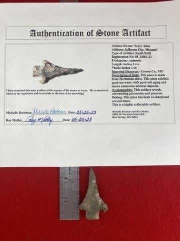 Please view the Motley Certificate of Authenticity for all information, where it is from , length, reported discovery, & the collections from which they came. Please see picture for measurement. These artifacts are from multiple collections from around the United States. KEY WORDS: NATIVE AMERICAN INDIAN ARTIFACT ARTIFACTS ARROWHEAD ARROWHEADS MISSISSIPPIAN QUAPAW CADDO POTTERY COINS MORGAN DOLLAR PEACE DOLLAR SILVER COINS