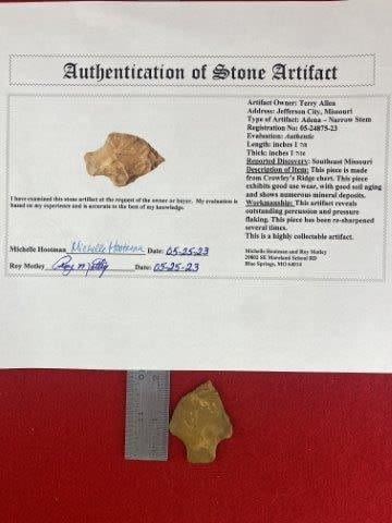 Please view the Motley Certificate of Authenticity for all information, where it is from , length, reported discovery, & the collections from which they came. Please see picture for measurement. These artifacts are from multiple collections from around the United States. KEY WORDS: NATIVE AMERICAN INDIAN ARTIFACT ARTIFACTS ARROWHEAD ARROWHEADS MISSISSIPPIAN QUAPAW CADDO POTTERY COINS MORGAN DOLLAR PEACE DOLLAR SILVER COINS